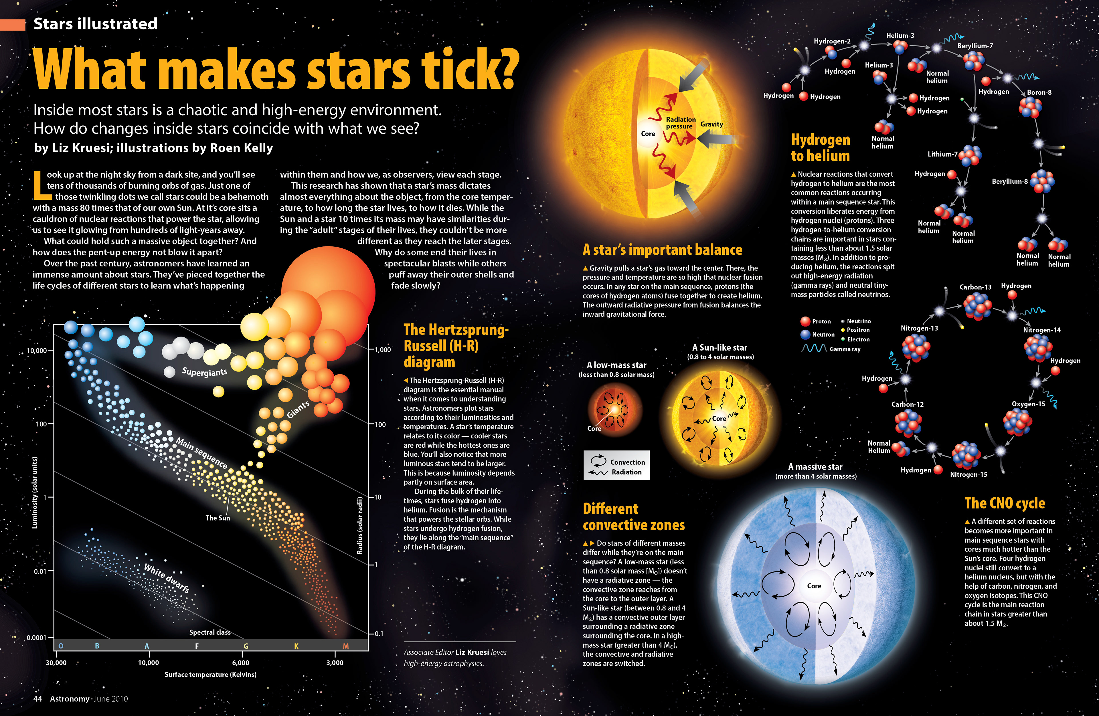 I honed my chops in infographic art during my 4 years as Senior Designer at Astronomy magazine. I worked with in-house illustrator Roen Kelly and writer/editor Liz Kruesi to create this layout about the life cycles of stars for the magazine's July 2010 issue.